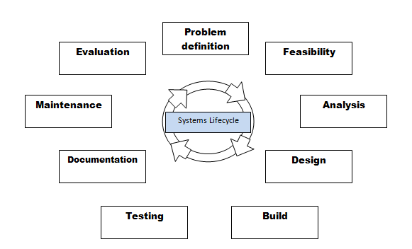We start at the beginning of the systems lifecycle which is the problem definition. Then each stage is followed in order till be get to evaluation. At this stage, when we ask how the project went after its completion, there could be a chance that new systems are identified which need to be added on or produced as separate systems. This is why it is known as the lifecycle. It could be done more than once for a given system. Consider Microsoft windows. When a new operating system is produced the next one will be planned. This is so it can take advantage of knowledge gained during the project as well as take advantage of new technologies. |