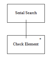 The diagram is read as follows; a serial search will check elements numerous times. We show that a operation has more fundamental operations by drawing a line underneath. This is simply read as “in order to do A we must do B†where there is a line from A to B. As such in order to do a serial search we must check elements. The * symbol denotes iteration. It simply means that we are allowed to do the check element operation numerous times. It puts no guards on to say when we can start or stop. This is not a replacement for pseudo code. It is simply showing the structure of the code not exactly what it is to do.