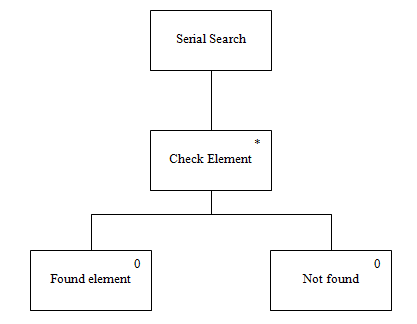 In this case we have two options. The first is that the element has been found and we should stop processing. The second is that its not found and should continue. We denote selection by the "0" symbol in the top right hand corner. This is the exact same style as iteration. |